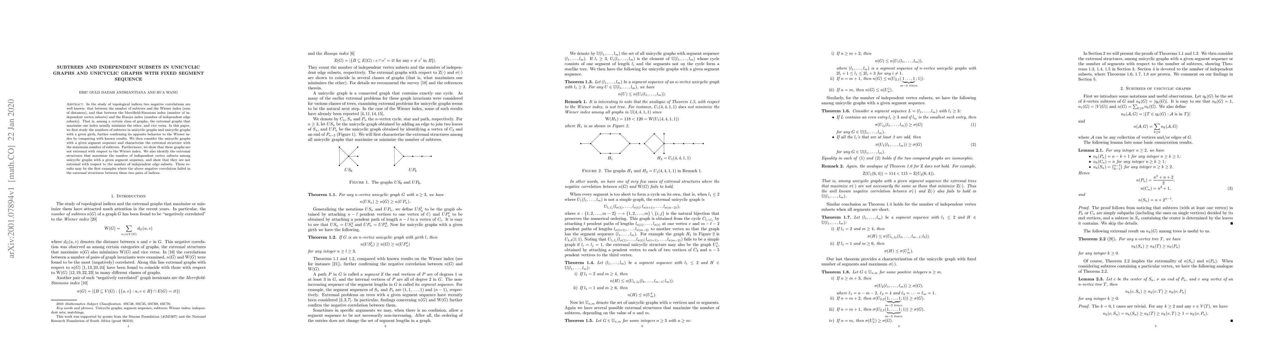 This paper investigates the correlation between subtrees and Wiener index, as well as between independent vertex subsets and Hosoya index in unicyclic graphs, particularly focusing on those with fixed segment sequences. It confirms the negative correlation in subtrees but finds that these structures do not exhibit extremal behavior for the Wiener index, and similarly identifies extremal structures for independent vertex subsets that do not correlate with independent edge subsets.