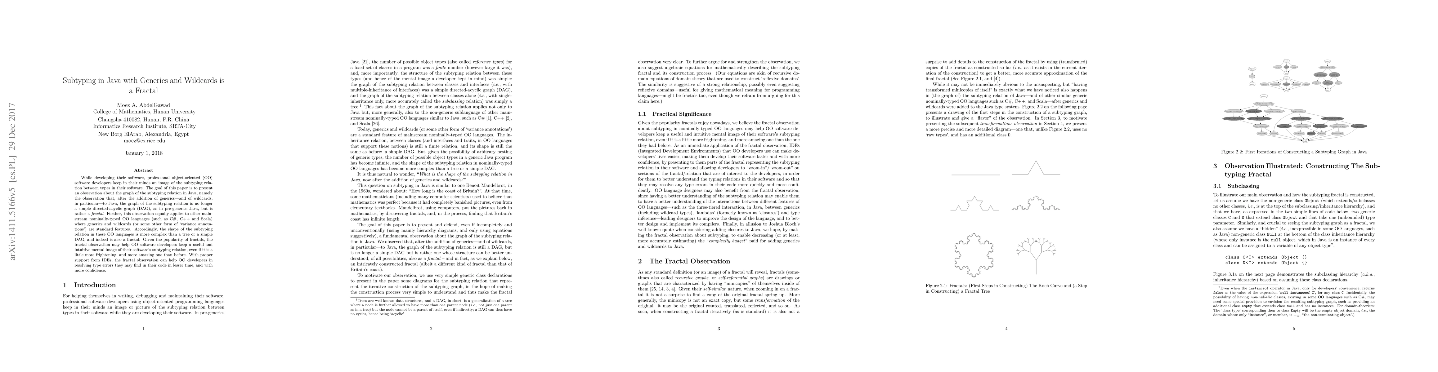 This paper observes that the subtyping relation graph in Java, post-generics, is fractal rather than a simple directed-acyclic graph, mirroring similar complexities in other mainstream OO languages with generics. The fractal nature may aid developers in understanding and resolving type errors more efficiently with IDE support.