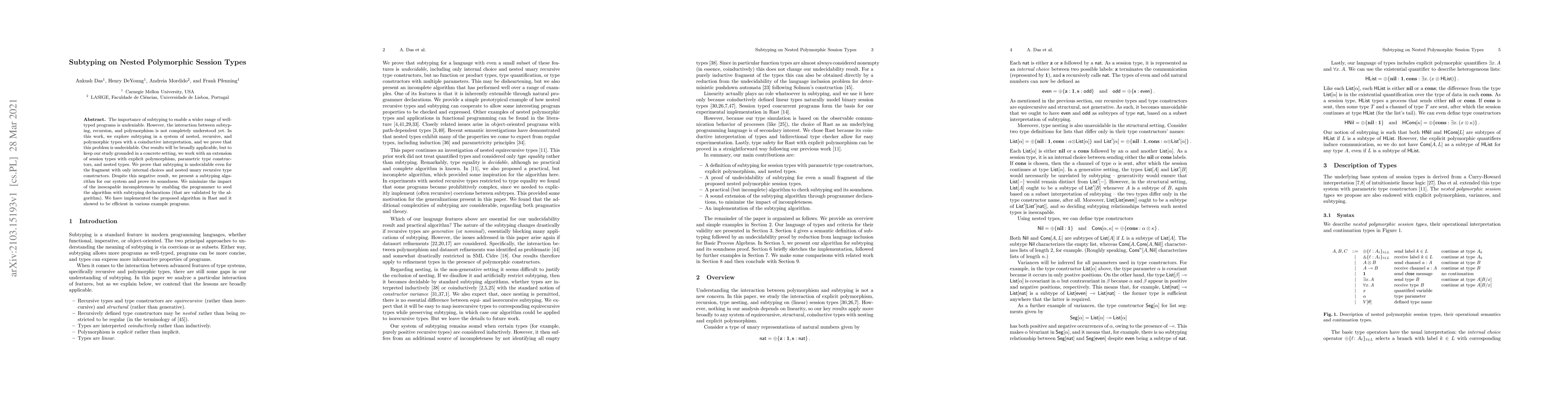 This paper investigates the undecidability of subtyping in nested polymorphic session types, demonstrating its impracticality for complete verification. Despite the negative result, it presents a sound subtyping algorithm allowing programmers to provide and validate subtyping declarations, implemented in Rast with promising efficiency.