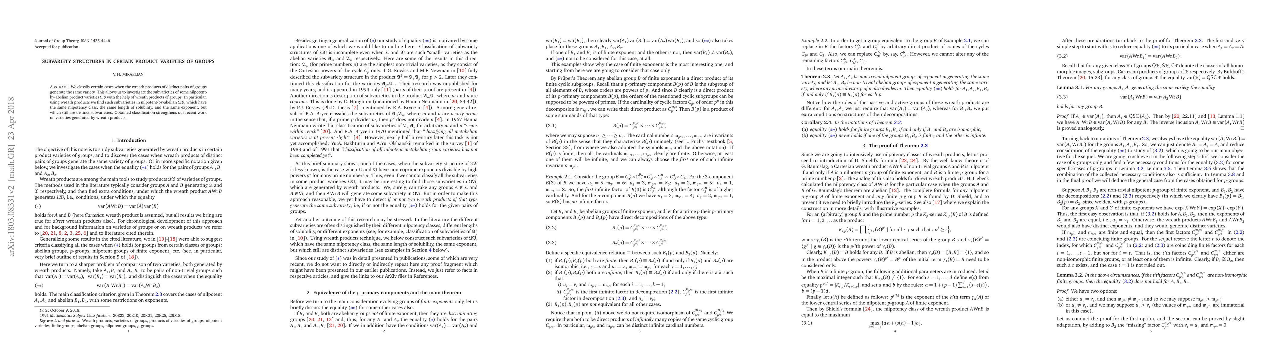 This paper classifies cases where wreath products of distinct pairs of groups generate the same variety and investigates subvarieties of nilpotent-by-abelian product varieties ${\mathfrak U}{\mathfrak V}$. It finds distinct subvarieties with identical nilpotency class, solubility length, and exponent using wreath products.