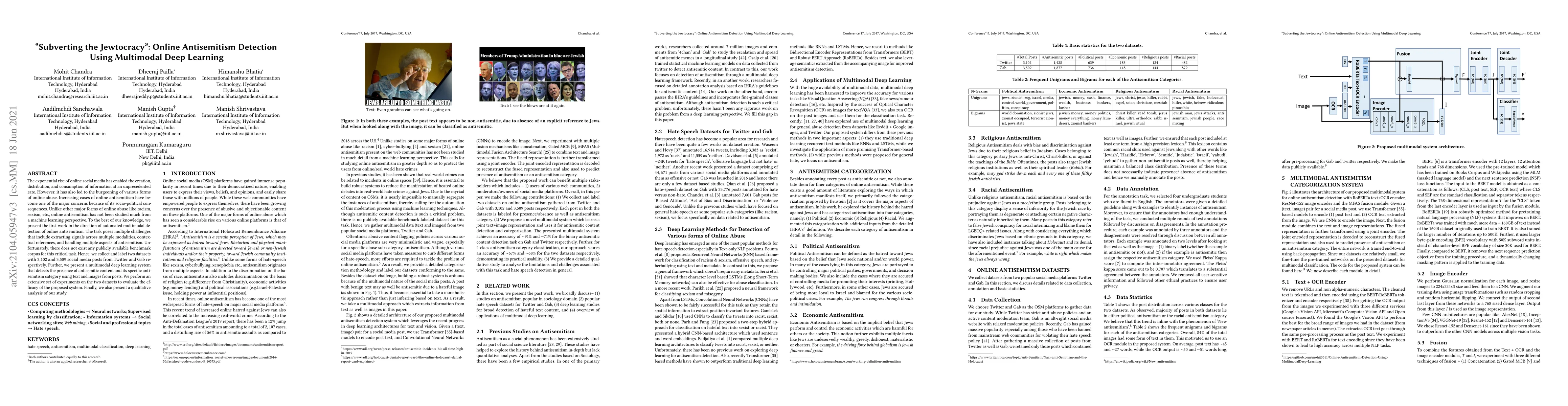 This paper introduces the first automated multimodal deep learning system for detecting online antisemitism, addressing the lack of research in this area. The authors collect and label two datasets from Twitter and Gab, and evaluate their system's performance on these datasets, providing a qualitative analysis of the results.