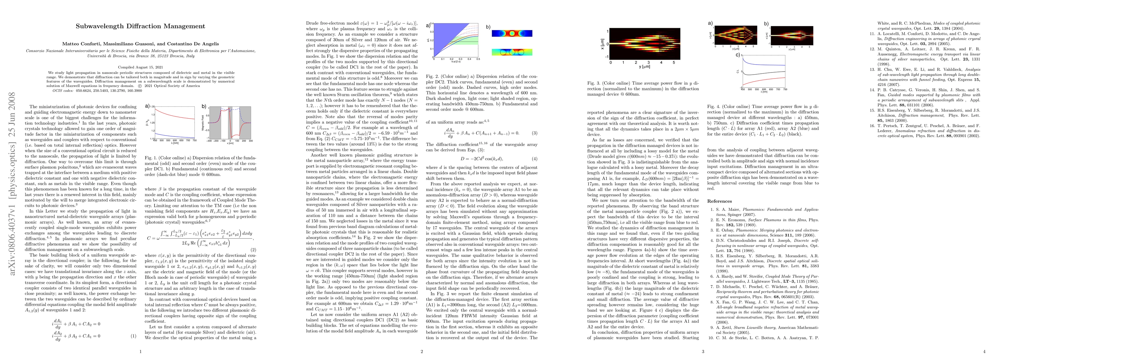 Researchers studied light propagation in nanoscale structures, demonstrating how to control diffraction on a subwavelength scale by varying the structure's features.