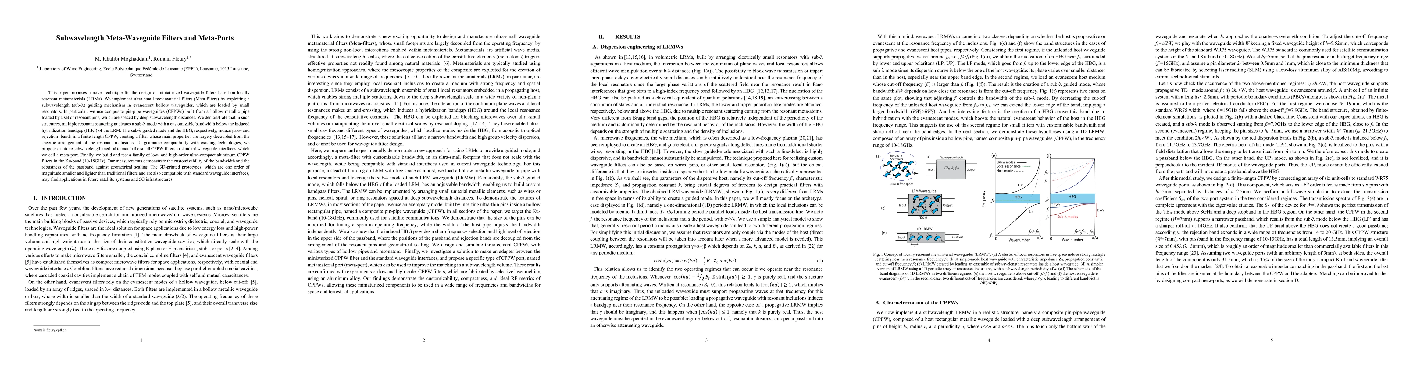 This paper introduces a technique for designing ultra-compact waveguide filters using subwavelength metamaterial filters (Meta-filters) based on composite pin-pipe waveguides (CPPWs) that exploit evanescent hollow waveguides with small resonators. The proposed filters, matched to standard waveguide interfaces via meta-ports, show customizable bandwidth and robust performance, offering potential for future satellite systems and 5G infrastructures.