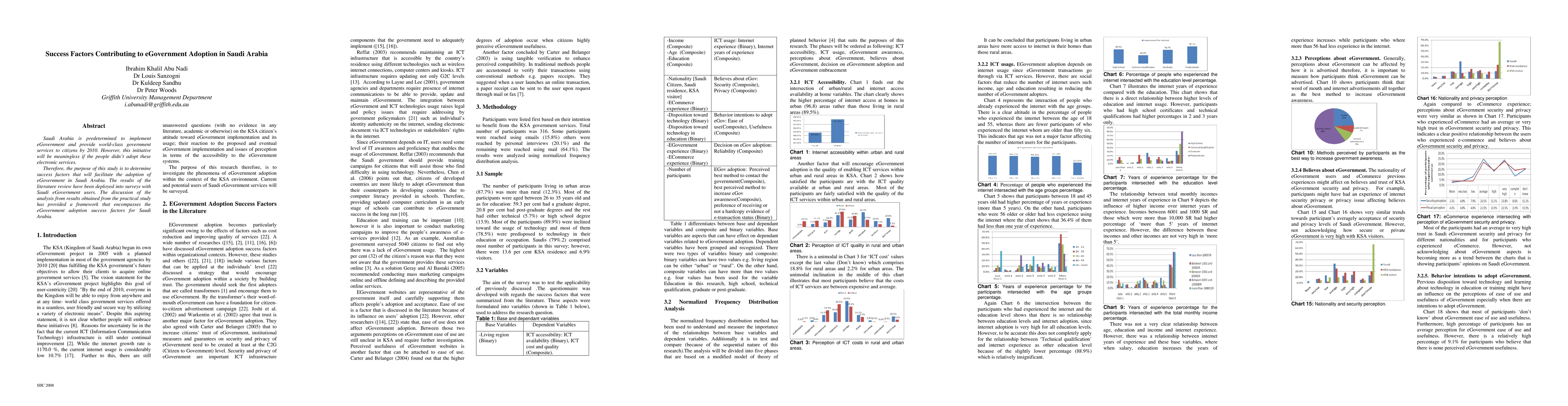 This study identifies key success factors for eGovernment adoption in Saudi Arabia through a G2C approach, focusing on citizen acceptance. Findings from surveys of Saudi eGovernment users reveal a framework for facilitating the adoption of electronic government services.