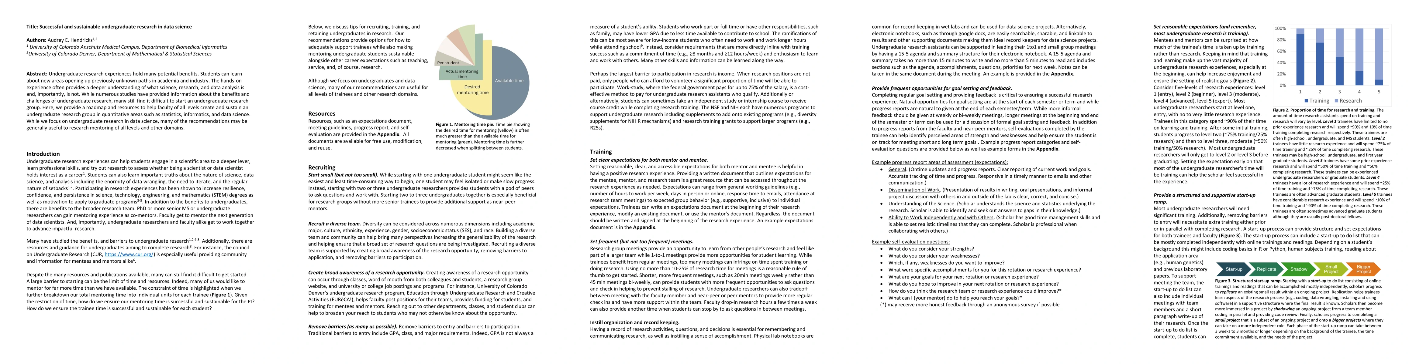 Undergraduate research experiences hold many potential benefits. Students can learn about new areas opening up previously unknown paths in academia and industry. The hands-on experience often provides a deeper understanding of what science, research, and data analysis is and, importantly, is not. While numerous studies have provided information about the benefits and challenges of undergraduate research, many still find it difficult to start an undergraduate research group. Here, we provide a roadmap and resources to help faculty of all levels create and sustain an undergraduate research group in quantitative areas such as statistics, informatics, and data science. While we focus on undergraduate research in data science, many of the recommendations may be generally useful to research mentoring of all levels and other domains.