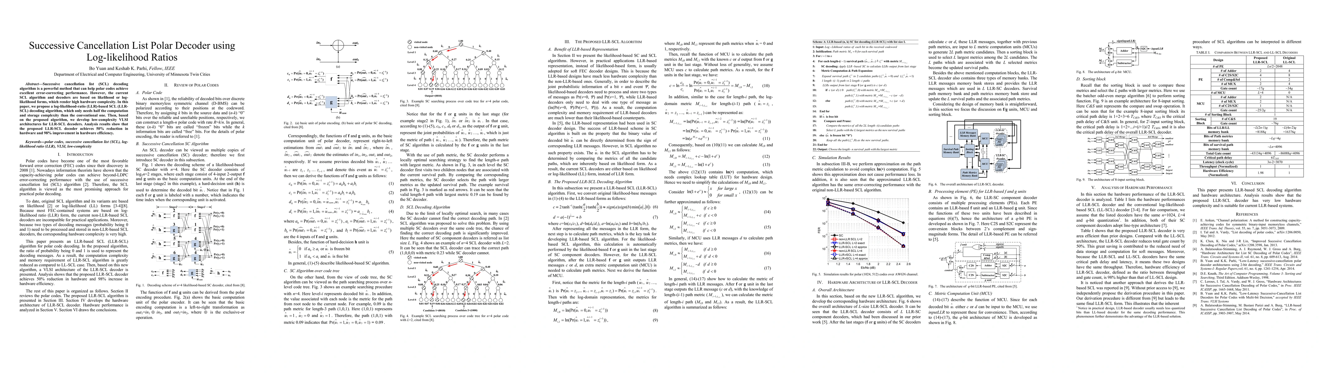 Researchers propose a log-likelihood-ratio-based successive cancellation list decoder that reduces hardware complexity by 50% while maintaining high error-correcting performance.