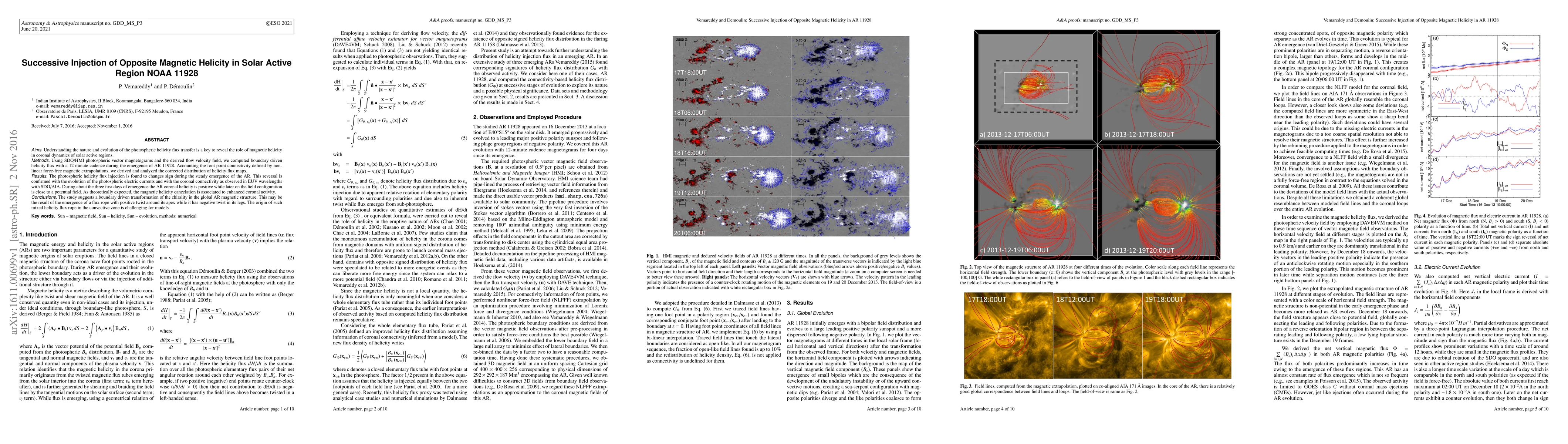 Understanding the nature and evolution of the photospheric helicity flux transfer is a key to reveal the role of magnetic helicity in coronal dynamics of solar active regions. Using SDO/HMI photospheric vector magnetograms and the derived flow velocity field, we computed boundary driven helicity flux with a 12 minute cadence during the emergence of AR 11928. Accounting the foot point connectivity defined by non-linear force-free magnetic extrapolations, we derived and analyzed the corrected distribution of helicity flux maps. The photospheric helicity flux injection is found to changes sign during the steady emergence of the AR. This reversal is confirmed with the evolution of the photospheric electric currents and with the coronal connectivity as observed in EUV wavelengths with SDO/AIA. During about the three first days of emergence, the AR coronal helicity is positive while later on the field configuration is close to a potential field. As theoretically expected, the magnetic helicity cancelation is associated to enhanced coronal activity. The study suggests a boundary driven transformation of the chirality in the global AR magnetic structure. This may be the result of the emergence of a flux rope with positive twist around its apex while it has negative twist in its legs. The origin of such mixed helicity flux rope in the convective zone is challenging for models.