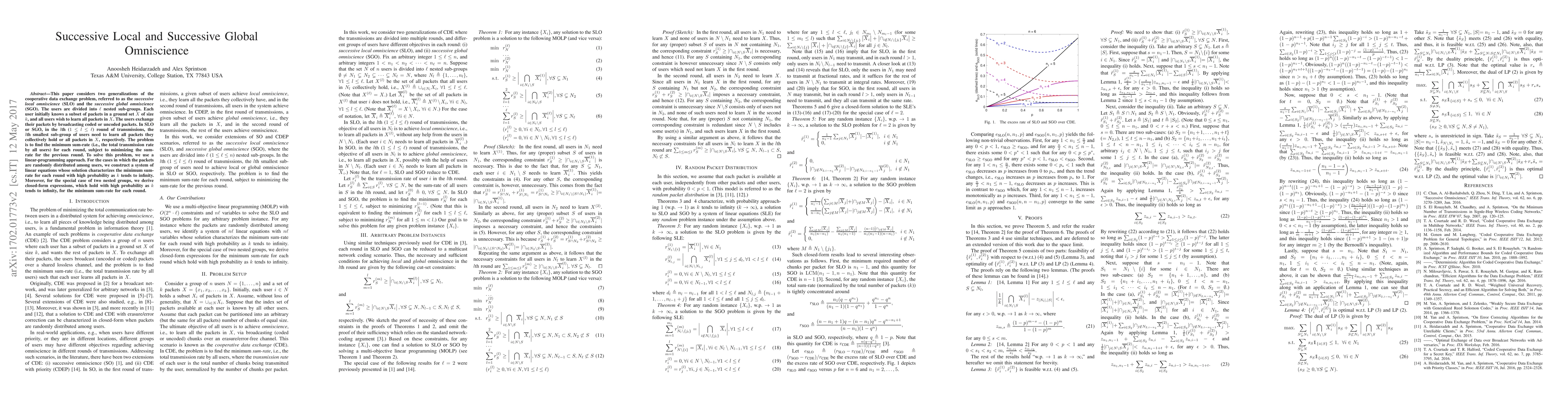 This paper considers two generalizations of the cooperative data exchange problem, referred to as the successive local omniscience (SLO) and the successive global omniscience (SGO). The users are divided into $\ell$ nested sub-groups. Each user initially knows a subset of packets in a ground set $X$ of size $k$, and all users wish to learn all packets in $X$. The users exchange their packets by broadcasting coded or uncoded packets. In SLO or SGO, in the $l$th ($1\leq l\leq \ell$) round of transmissions, the $l$th smallest sub-group of users need to learn all packets they collectively hold or all packets in $X$, respectively. The problem is to find the minimum sum-rate (i.e., the total transmission rate by all users) for each round, subject to minimizing the sum-rate for the previous round. To solve this problem, we use a linear-programming approach. For the cases in which the packets are randomly distributed among users, we construct a system of linear equations whose solution characterizes the minimum sum-rate for each round with high probability as $k$ tends to infinity. Moreover, for the special case of two nested groups, we derive closed-form expressions, which hold with high probability as $k$ tends to infinity, for the minimum sum-rate for each round.