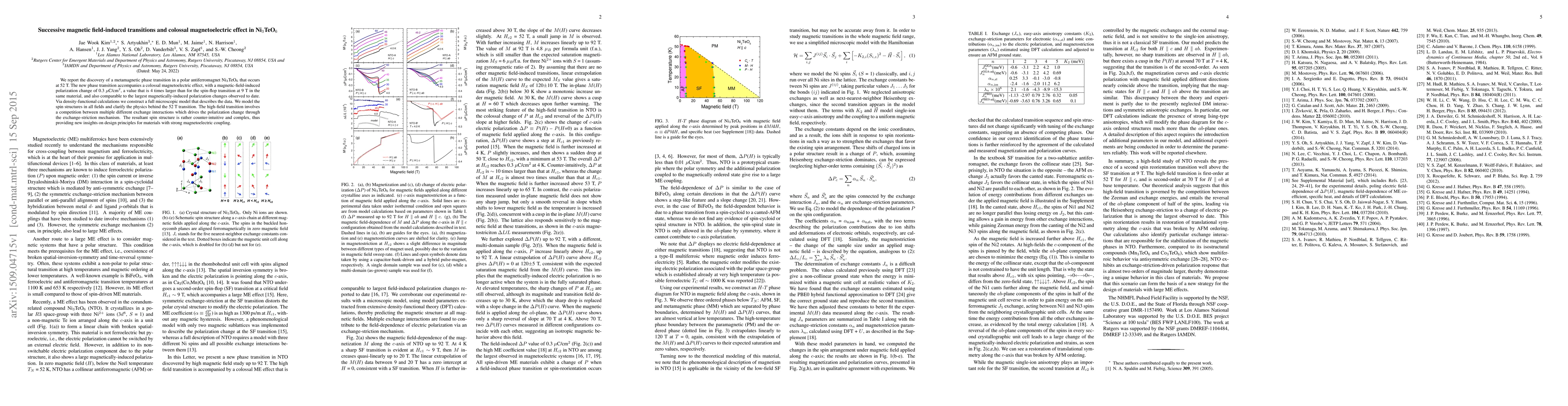 This paper reports a metamagnetic phase transition in Ni$_3$TeO$_6$ at 52 T, accompanied by a colossal magnetoelectric effect with a magnetic-field-induced polarization change of 0.3 $\mu$C/cm$^2$. Density-functional calculations reveal a complex spin structure driven by competition between multiple exchange interactions, offering new insights into materials with strong magnetoelectric coupling.