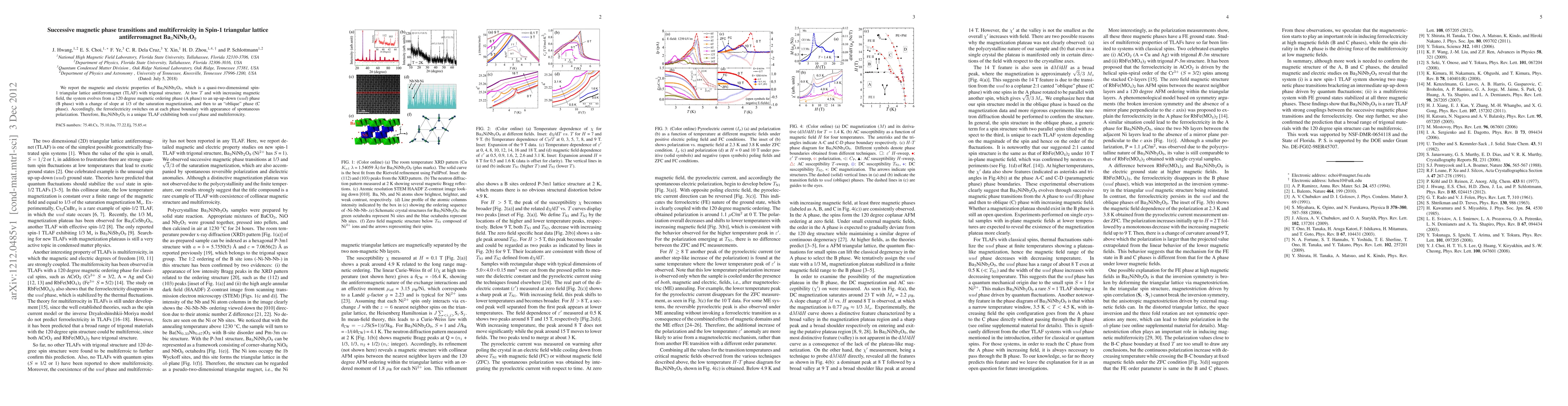 This paper investigates the magnetic and electric properties of Ba$_3$NiNb$_2$O$_9$, a spin-1 triangular lattice antiferromagnet, revealing successive magnetic phase transitions and multiferroicity. The material transitions through a 120-degree magnetic ordering phase, an up-up-down phase, and an oblique phase, each accompanied by the emergence of spontaneous polarization.