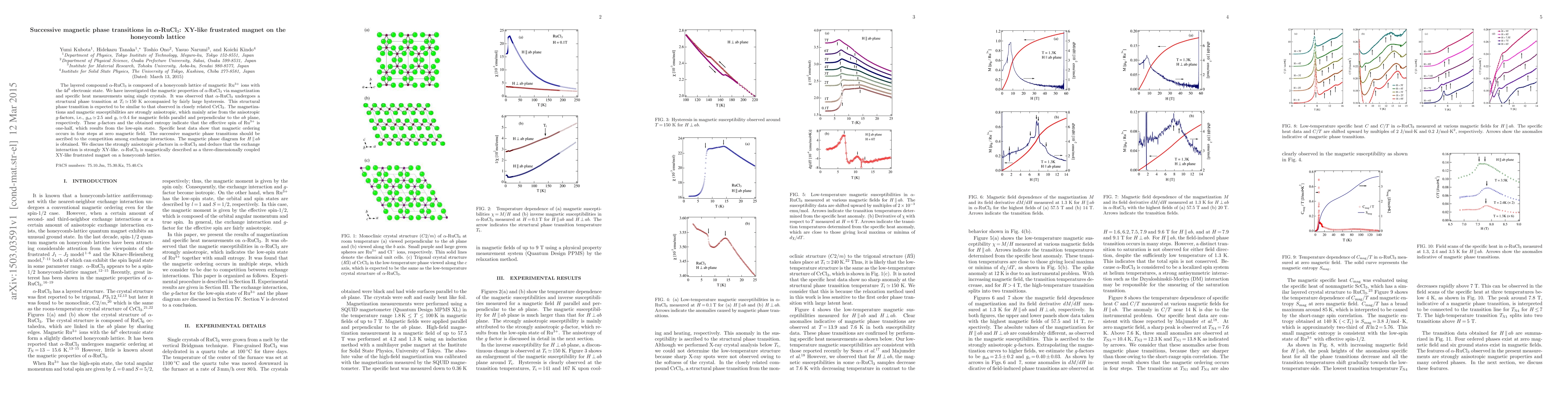 $\alpha$-RuCl$_3$ undergoes a structural phase transition at 150 K, followed by successive magnetic phase transitions due to XY-like frustrated interactions on a honeycomb lattice. The compound exhibits strongly anisotropic $g$-factors and magnetic ordering in four steps at zero magnetic field.