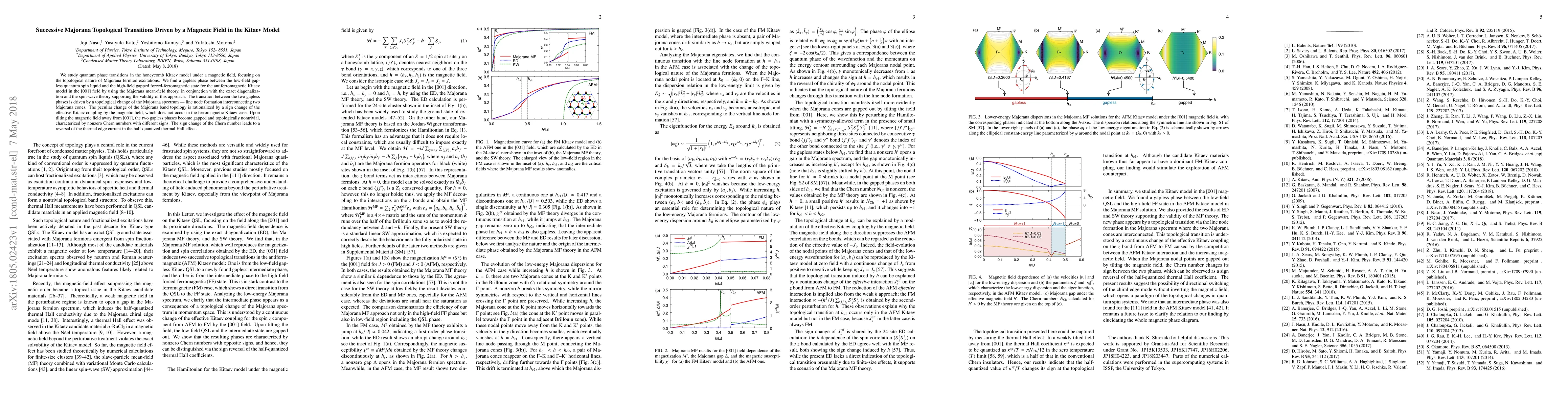 This paper explores quantum phase transitions in the Kitaev model under a magnetic field, revealing successive topological transitions driven by the field. It identifies a gapless phase transition between a low-field quantum spin liquid and a high-field ferromagnetic state, characterized by a topological change in the Majorana spectrum.