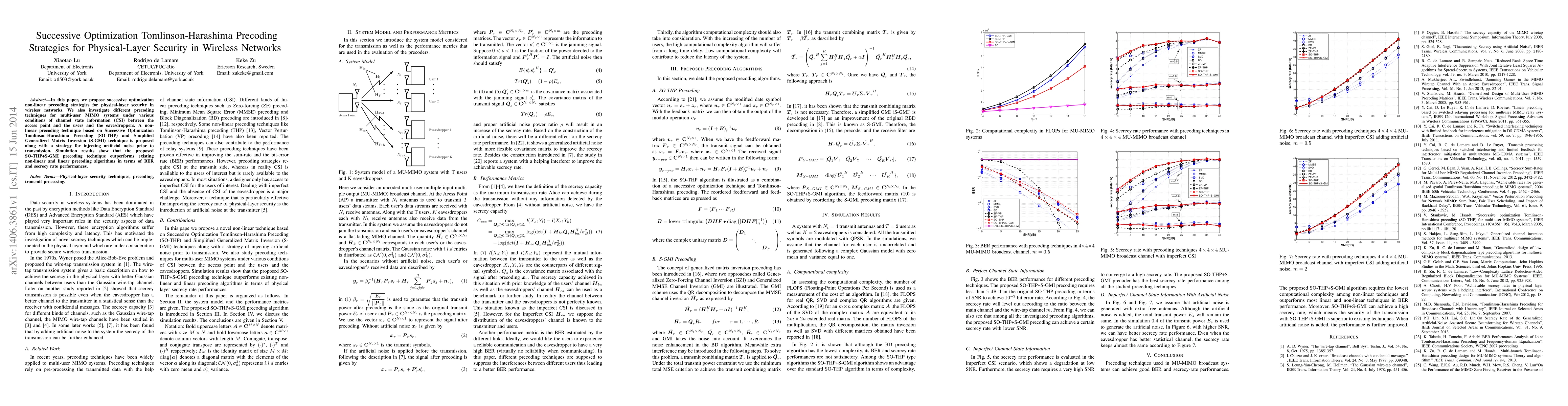 This paper proposes successive optimization non-linear precoding strategies using SO-THP and S-GMI for physical-layer security in wireless networks, including artificial noise injection. Simulation results show superior BER and secrecy rate performance compared to existing algorithms.