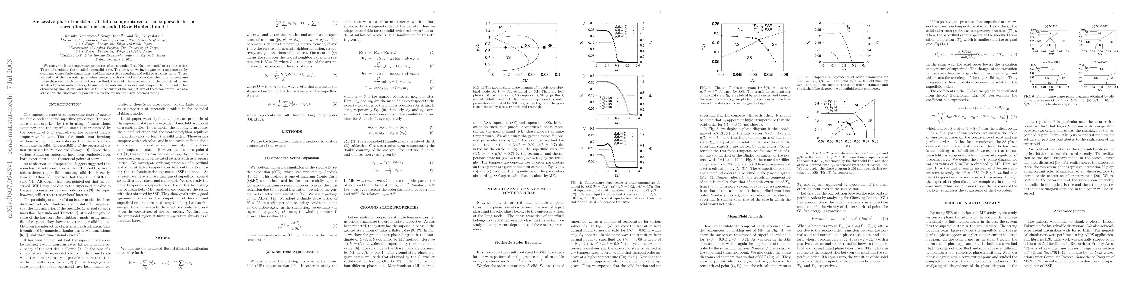 We study the finite temperature properties of the extended Bose-Hubbard model on a cubic lattice. This model exhibits the so-called supersolid state. To start with, we investigate ordering processes by quantum Monte Carlo simulations, and find successive superfluid and solid phase transitions. There, we find that the two order parameters compete with each other. We obtain the finite temperature phase diagram, which contains the superfluid, the solid, the supersolid and the disordered phase. We develop a mean-field theory to analyze the ordering processes and compare the result with that obtained by simulations, and discuss the mechanism of the competition of these two orders. We also study how the supersolid region shrinks as the on-site repulsion becomes strong.
