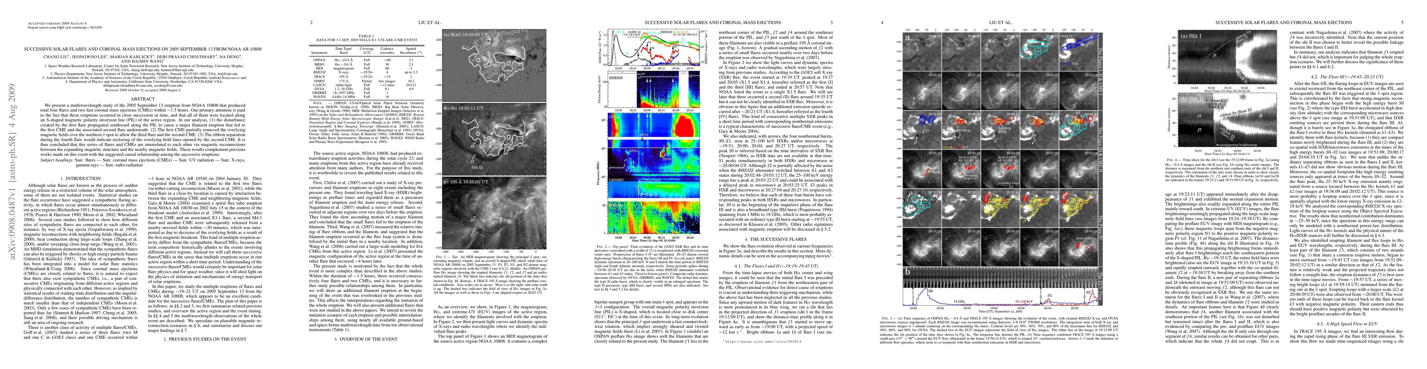A series of solar flares and coronal mass ejections occurred in close succession on 2005 September 13, with each event linked to the previous one through magnetic reconnections, according to a multiwavelength study.