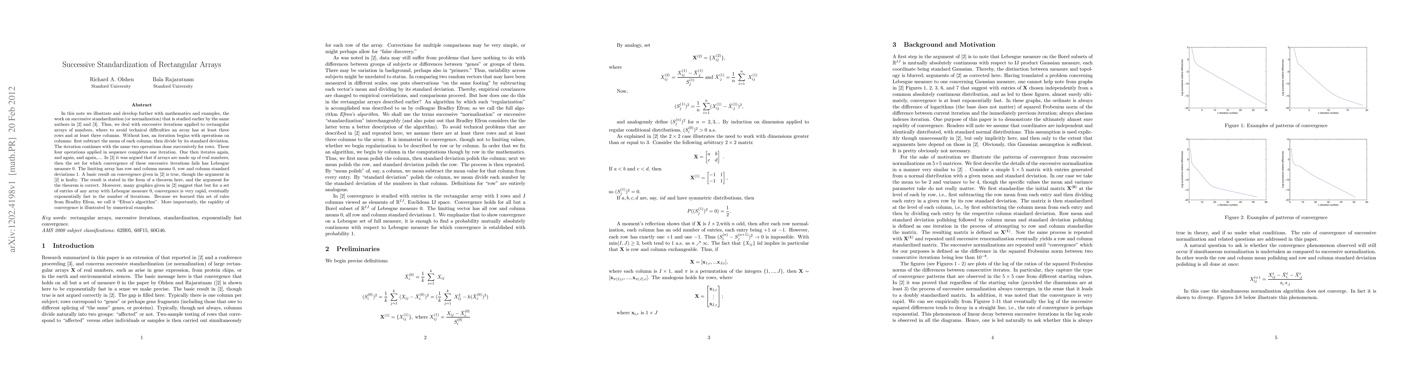 In this note we illustrate and develop further with mathematics and examples, the work on successive standardization (or normalization) that is studied earlier by the same authors in Olshen and Rajaratnam (2010) and Olshen and Rajaratnam (2011). Thus, we deal with successive iterations applied to rectangular arrays of numbers, where to avoid technical difficulties an array has at least three rows and at least three columns. Without loss, an iteration begins with operations on columns: first subtract the mean of each column; then divide by its standard deviation. The iteration continues with the same two operations done successively for rows. These four operations applied in sequence completes one iteration. One then iterates again, and again, and again,.... In Olshen and Rajaratnam (2010) it was argued that if arrays are made up of real numbers, then the set for which convergence of these successive iterations fails has Lebesgue measure 0. The limiting array has row and column means 0, row and column standard deviations 1. A basic result on convergence given in Olshen and Rajaratnam (2010) is true, though the argument in Olshen and Rajaratnam (2010) is faulty. The result is stated in the form of a theorem here, and the argument for the theorem is correct. Moreover, many graphics given in Olshen and Rajaratnam (2010) suggest that but for a set of entries of any array with Lebesgue measure 0, convergence is very rapid, eventually exponentially fast in the number of iterations. Because we learned this set of rules from Bradley Efron, we call it "Efron's algorithm". More importantly, the rapidity of convergence is illustrated by numerical examples.