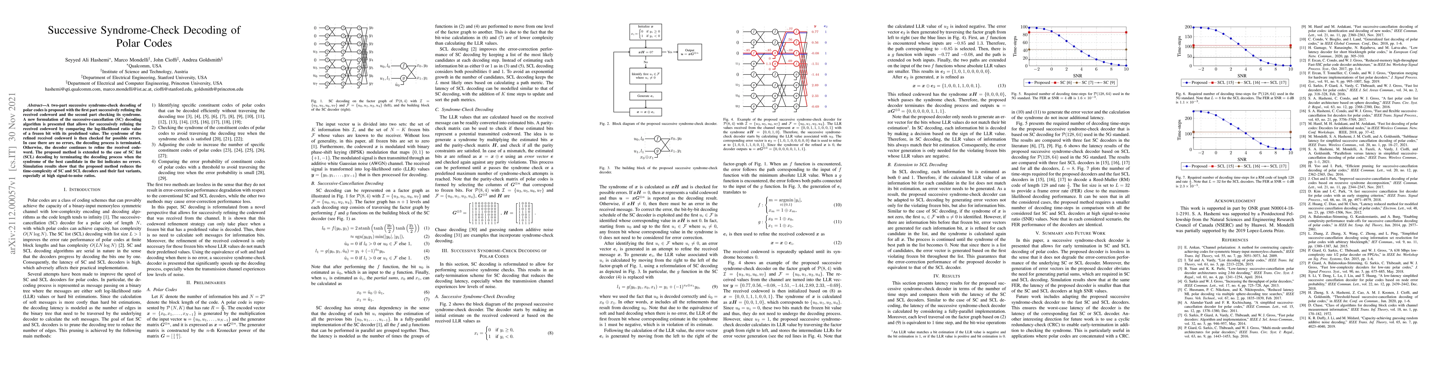 The paper proposes a two-part successive syndrome-check decoding for polar codes, combining refinement of the received codeword with syndrome checking. This method extends to SC list decoding, terminating when the syndrome of the best candidate indicates no errors.