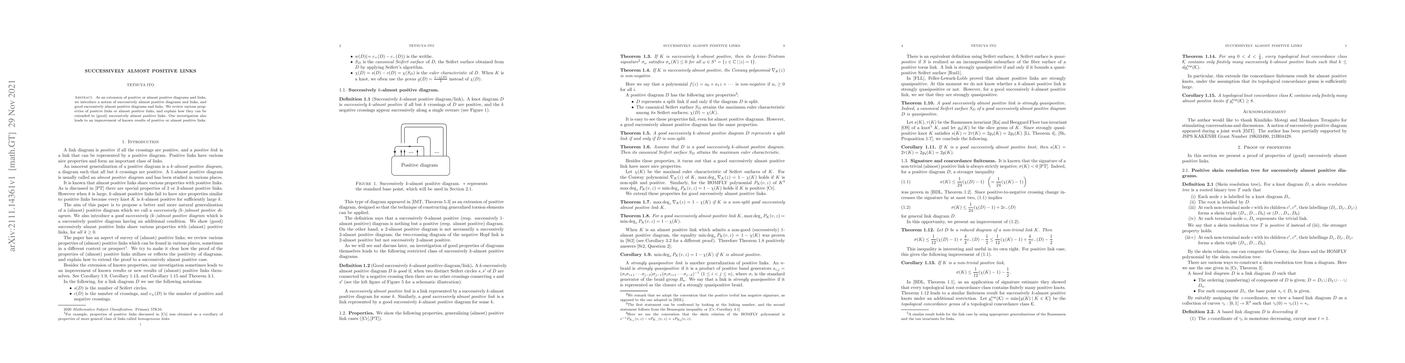 This paper introduces successively almost positive diagrams and links, extending the concepts of positive and almost positive links. It reviews properties of these existing links and demonstrates how they can be improved within the new framework.