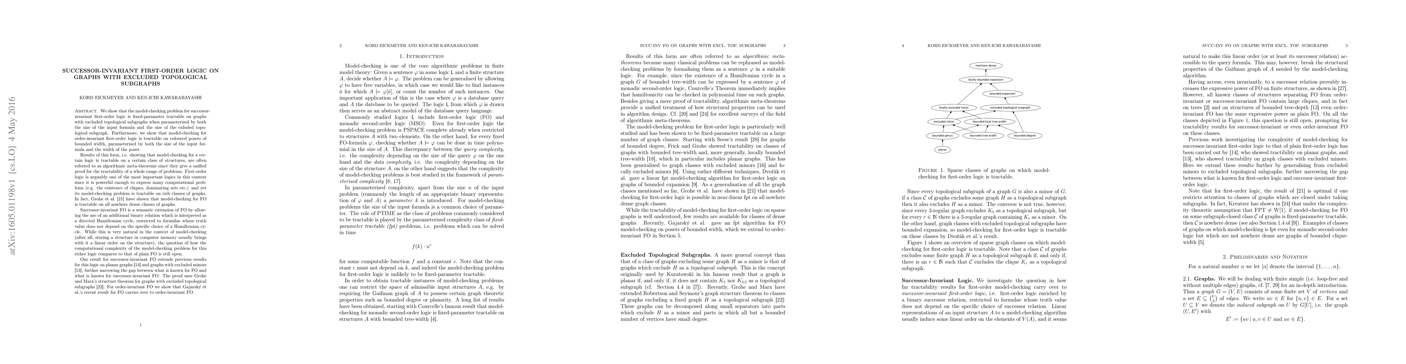 This paper demonstrates that model-checking for successor-invariant first-order logic is fixed-parameter tractable on graphs excluding specific topological subgraphs, parameterized by formula size and excluded subgraph size. It also shows that order-invariant first-order logic is tractable on coloured posets of bounded width, parameterized by formula size and poset width.