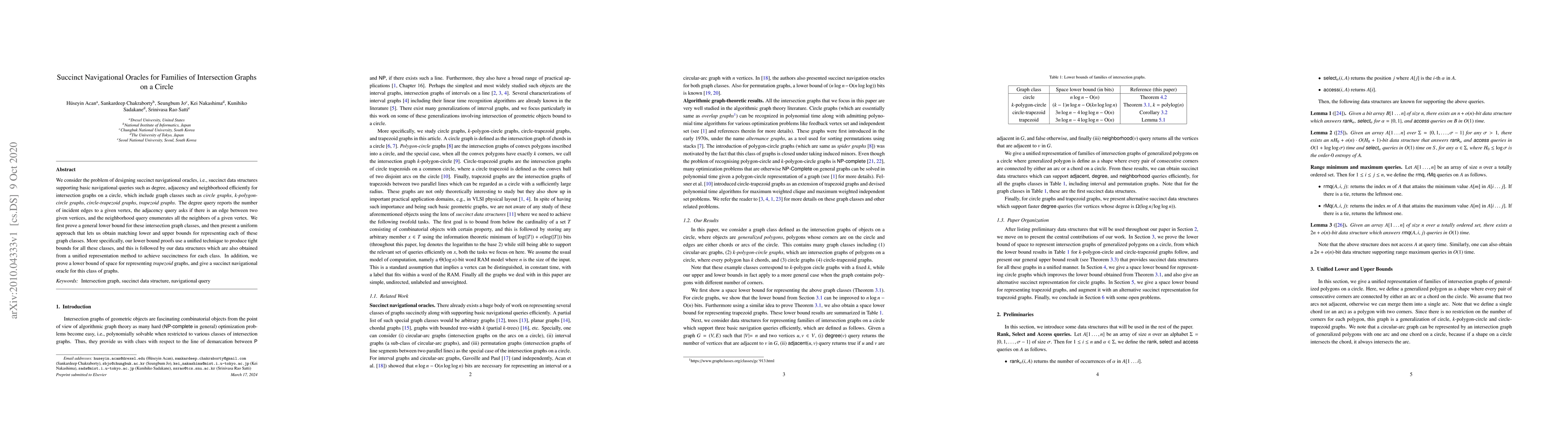 This paper designs succinct navigational oracles for intersection graphs on a circle, including circle graphs and trapezoid graphs, by presenting both lower and upper bounds for data structures supporting degree, adjacency, and neighborhood queries. It uses a unified technique for tight bounds and a method for achieving succinct representations for each graph class.