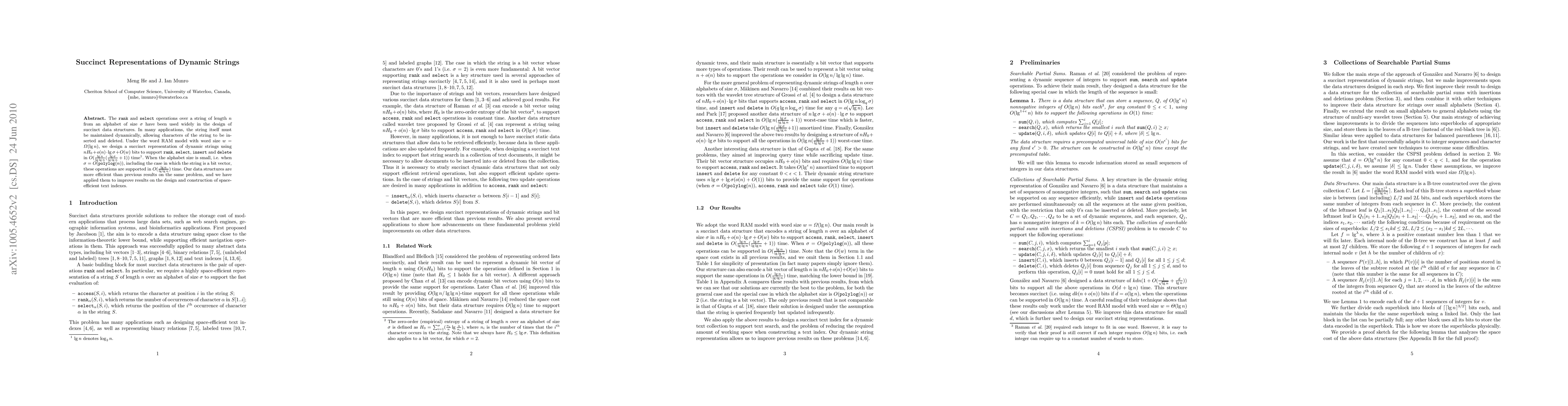 This paper presents a succinct data structure for dynamic strings that supports rank, select, insert, and delete operations in optimal time complexity, achieving efficiency improvements over previous results. The structure uses $nH_0 + o(n)\lg\sigma + O(w)$ bits and performs operations in $O(\frac{\lg n}{\lg\lg n}(\frac{\lg \sigma}{\lg\lg n}+1))$ time, with even better efficiency for small alphabet sizes.