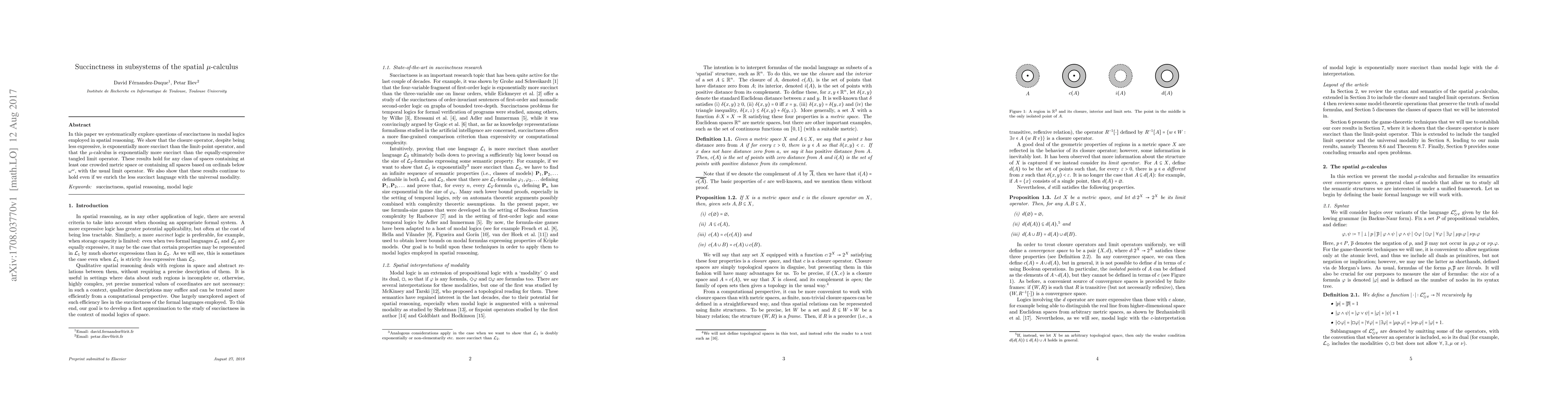 In this paper we systematically explore questions of succinctness in modal logics employed in spatial reasoning. We show that the closure operator, despite being less expressive, is exponentially more succinct than the limit-point operator, and that the $\mu$-calculus is exponentially more succinct than the equally-expressive tangled limit operator. These results hold for any class of spaces containing at least one crowded metric space or containing all spaces based on ordinals below $\omega^\omega$, with the usual limit operator. We also show that these results continue to hold even if we enrich the less succinct language with the universal modality.
