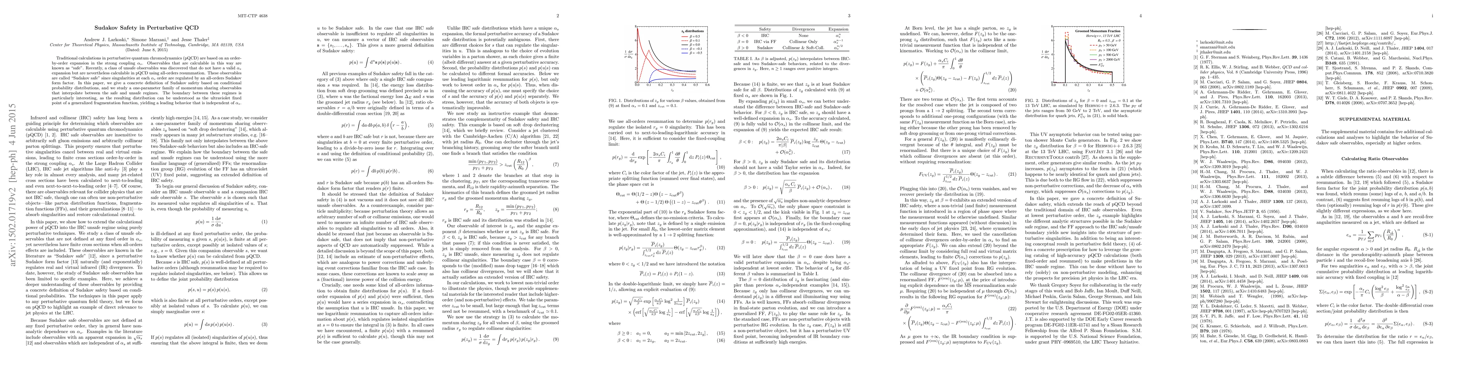The paper presents a novel definition of Sudakov safety grounded in conditional probability distributions and demonstrates its application to a family of momentum sharing observables, revealing an ultraviolet fixed point behavior at the safe-unsafe boundary.