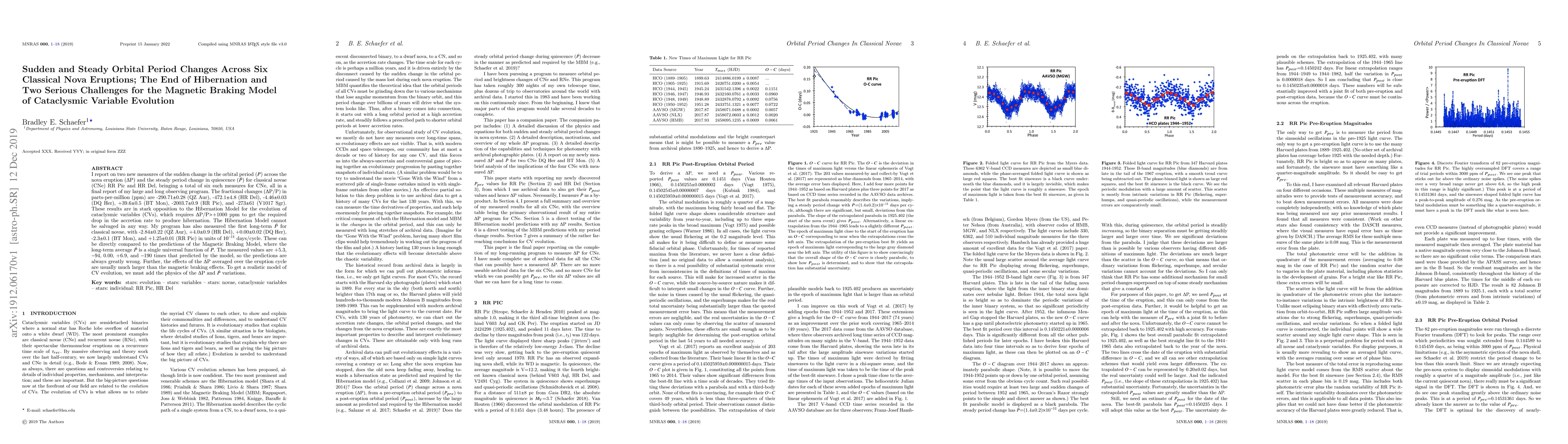 I report on two new measures of the sudden change in the orbital period ($P$) across the nova eruption ($\Delta$P) and the steady period change in quiescence ($\dot{P}$) for classical novae (CNe) RR Pic and HR Del, bringing a total of six such measures for CNe, all in a final report of my large and long observing program. The fractional changes ($\Delta$P/P) in parts-per-million (ppm) are -290.71$\pm$0.28 (QZ Aur), -472.1$\pm$4.8 (HR Del), -4.46$\pm$0.03 (DQ Her), +39.6$\pm$0.5 (BT Mon), -2003.7$\pm$0.9 (RR Pic), and -273$\pm$61 (V1017 Sgr). These results are in stark opposition to the Hibernation Model for the evolution of cataclysmic variables (CVs), which requires $\Delta$P/P$>$+1000 ppm to get the required drop in the accretion rate to produce hibernation. The Hibernation Model cannot be salvaged in any way. My program has also measured the first long-term $\dot{P}$ for classical novae, with -2.84$\pm$0.22 (QZ Aur), +4.0$\pm$0.9 (HR Del), +0.00$\pm$0.02 (DQ Her), -2.3$\pm$0.1 (BT Mon), and +1.25$\pm$0.01 (RR Pic) in units of $10^{-11}$ days/cycle. These can be directly compared to the predictions of the Magnetic Braking Model, where the long-term average $\dot{P}$ is a single universal function of $P$. The measured values are +5.3, $-$94, 0.00, +6.9, and $-$190 times that predicted by the model, so the predictions are always greatly wrong. Further, the effects of the $\Delta$P averaged over the eruption cycle are usually much larger than the magnetic braking effects. To get a realistic model of CV evolution, we must add the physics of the $\Delta$P and $\dot{P}$ variations.