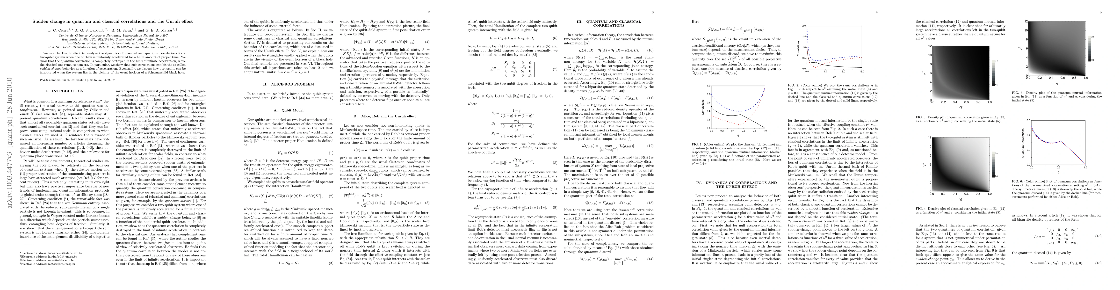 We use the Unruh effect to analyze the dynamics of classical and quantum correlations for a two-qubit system when one of them is uniformly accelerated for a finite amount of proper time. We show that the quantum correlation is completely destroyed in the limit of infinite acceleration, while the classical one remains nonzero. In particular, we show that such correlations exhibit the so-called sudden-change behavior as a function of acceleration. Eventually, we discuss how our results can be interpreted when the system lies in the vicinity of the event horizon of a Schwarzschild black hole.