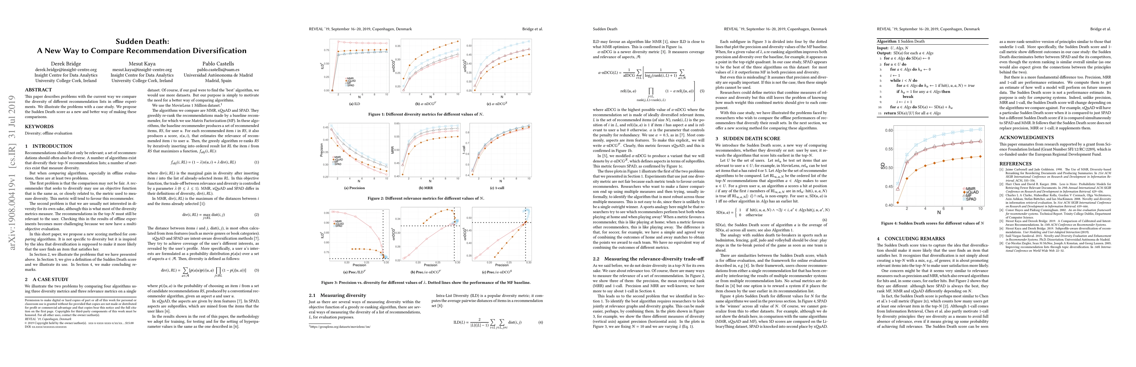 This paper describes problems with the current way we compare the diversity of different recommendation lists in offline experiments. We illustrate the problems with a case study. We propose the Sudden Death score as a new and better way of making these comparisons.