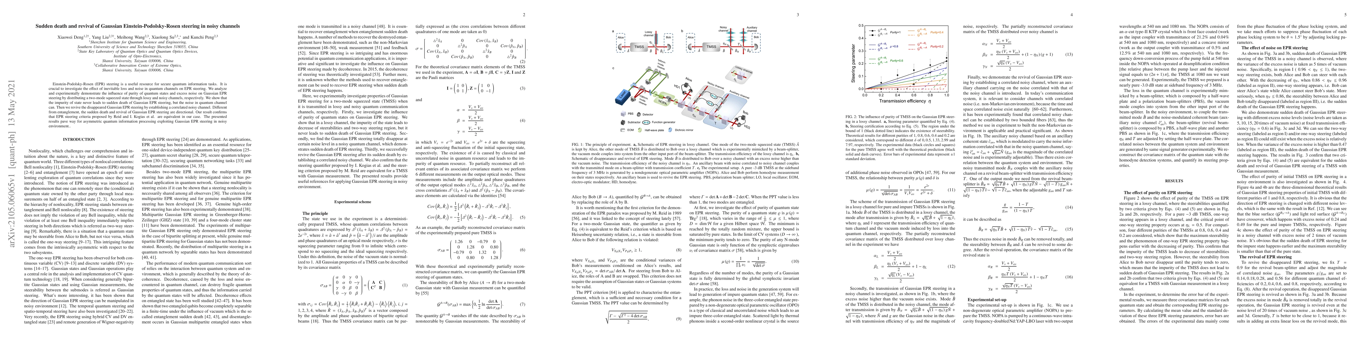 This paper investigates how noise and loss in quantum channels affect Gaussian Einstein-Podolsky-Rosen (EPR) steering, demonstrating that while state impurity does not cause sudden death, channel noise can. The study revives lost Gaussian EPR steering through a correlated noisy channel, highlighting its directional nature and confirming the equivalence of established EPR steering criteria.