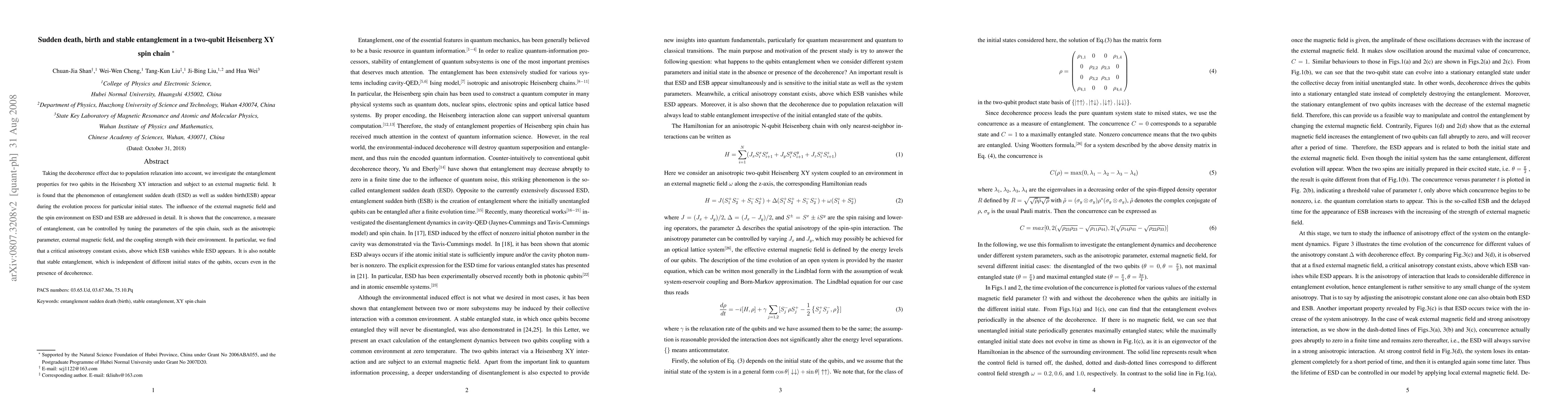 This paper investigates the entanglement dynamics in a two-qubit Heisenberg XY spin chain under decoherence, revealing phenomena of entanglement sudden death and birth. The study shows that the concurrence can be controlled by adjusting parameters like the anisotropic constant, external magnetic field, and coupling strength, with a critical anisotropy threshold above which entanglement birth ceases while death occurs, and stable entanglement persists despite decoherence.