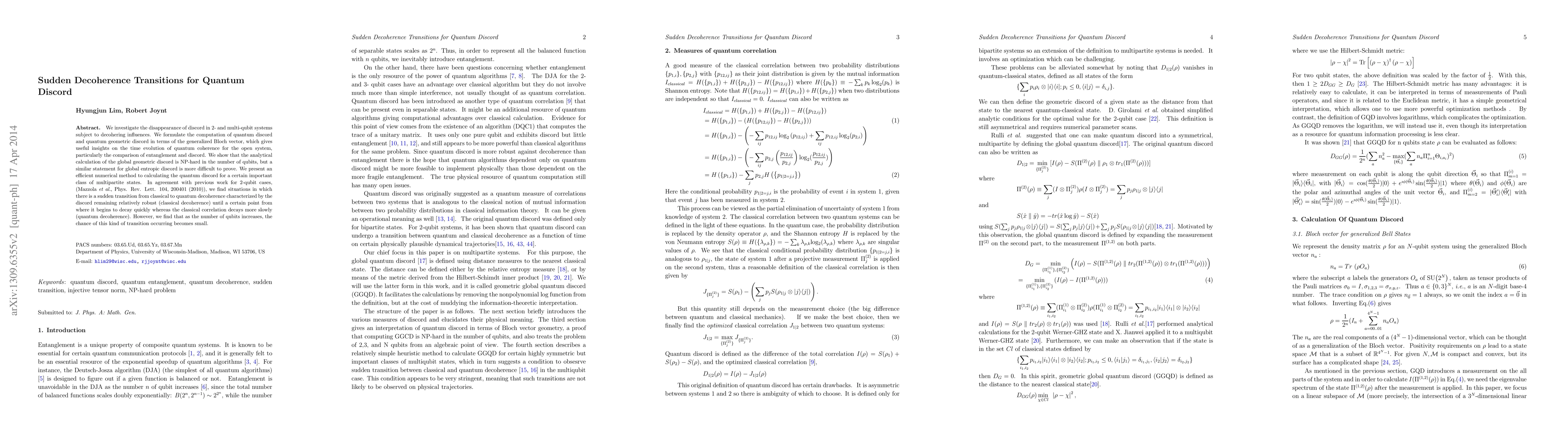 This paper explores the dynamics of quantum discord in multi-qubit systems under decoherence, revealing sudden transitions from classical to quantum decoherence. It introduces an efficient numerical method for calculating quantum discord and finds that such transitions become less likely with more qubits.
