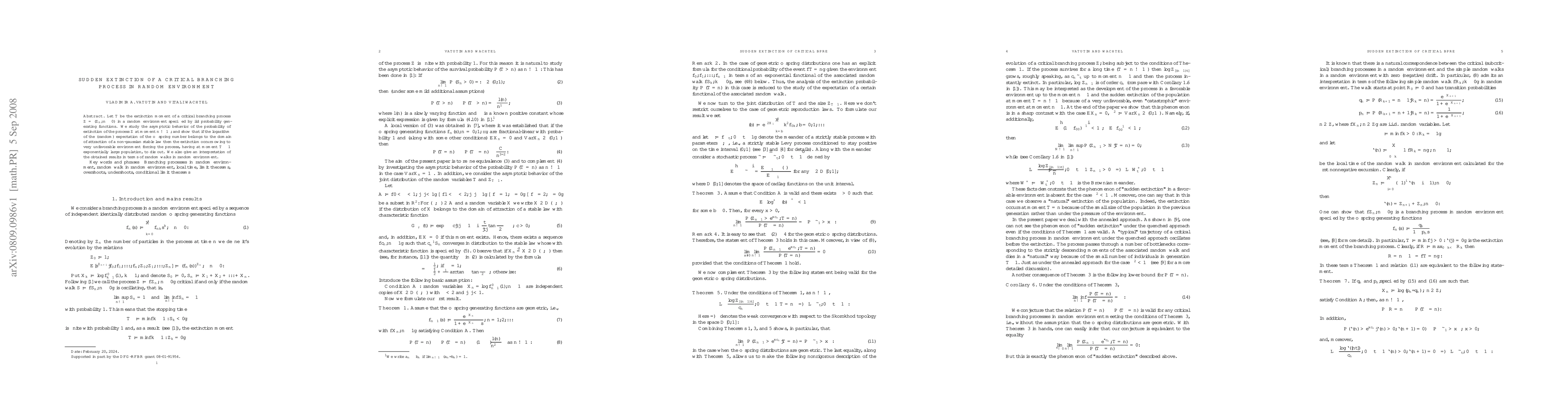 This paper investigates the extinction behavior of a critical branching process in a random environment, demonstrating that under certain conditions, the extinction occurs suddenly due to an extremely unfavorable environment, leading to the collapse of an exponentially large population. The findings are also related to the behavior of random walks in random environments.