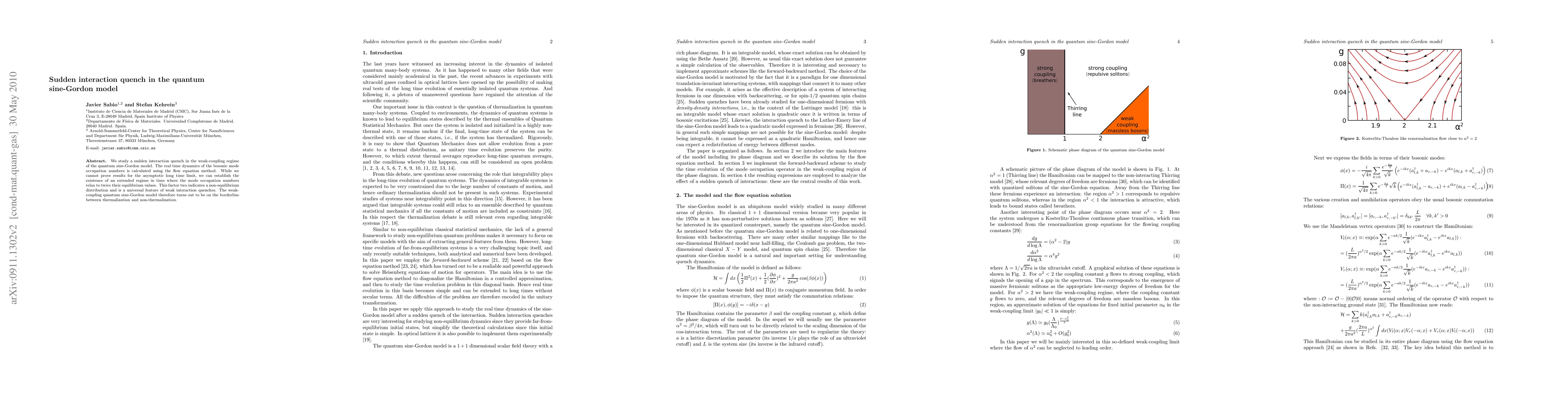 The study investigates sudden interaction quenches in the weak-coupling quantum sine-Gordon model, revealing an extended regime where bosonic mode occupation numbers relax to twice their equilibrium values, indicating a non-equilibrium distribution and positioning the model on the threshold between thermalization and non-thermalization.
