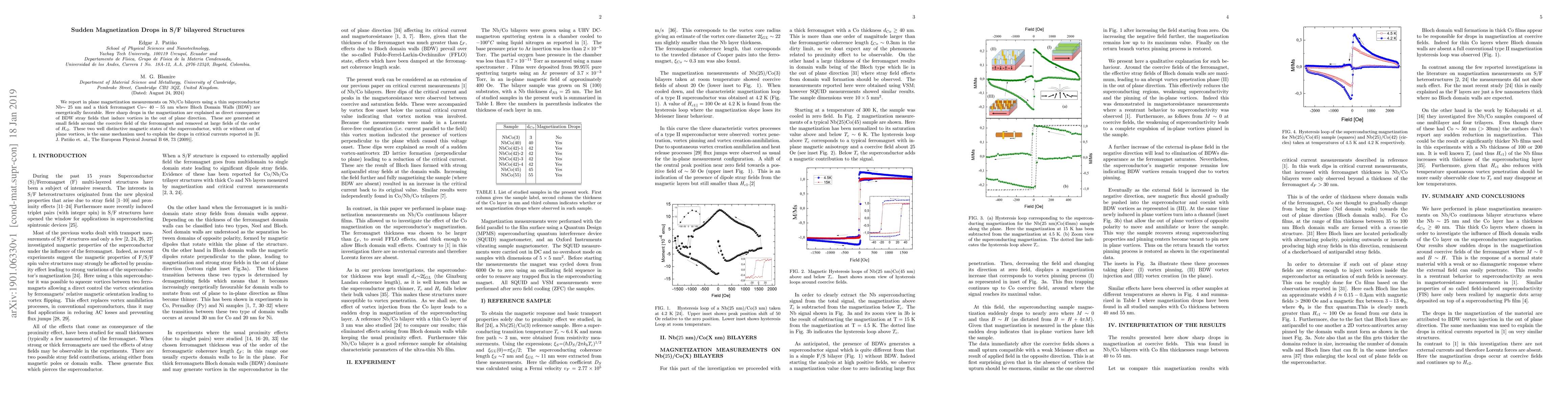This study investigates sudden magnetization drops in Nb/Co bilayered structures, attributing these drops to Bloch Domain Wall (BDW) stray fields inducing vortices in the superconductor. The observed magnetic states correlate with the presence or absence of out-of-plane vortices, mirroring the mechanism behind reported critical current drops.