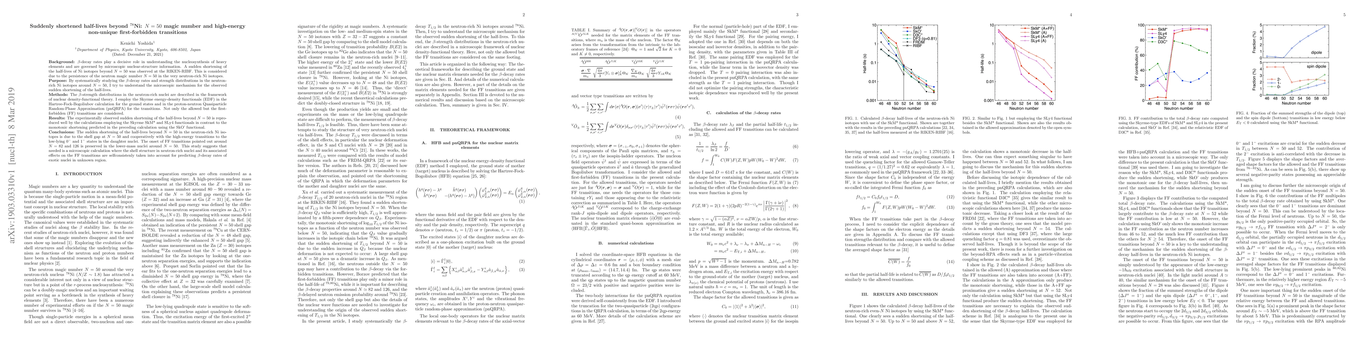 The research identifies a sudden decrease in half-lives of Ni isotopes beyond N=50, attributed to the endurance of the neutron magic number N=50. Utilizing nuclear density-functional theory and Skyrme SkM* and SLy4 functionals, the study reproduces this phenomenon, linking it to shell gaps at N=50 and high-energy transitions to low-lying daughter states. The findings suggest the necessity of consistent microscopic calculations for predicting beta-decay rates in exotic, neutron-rich nuclei.