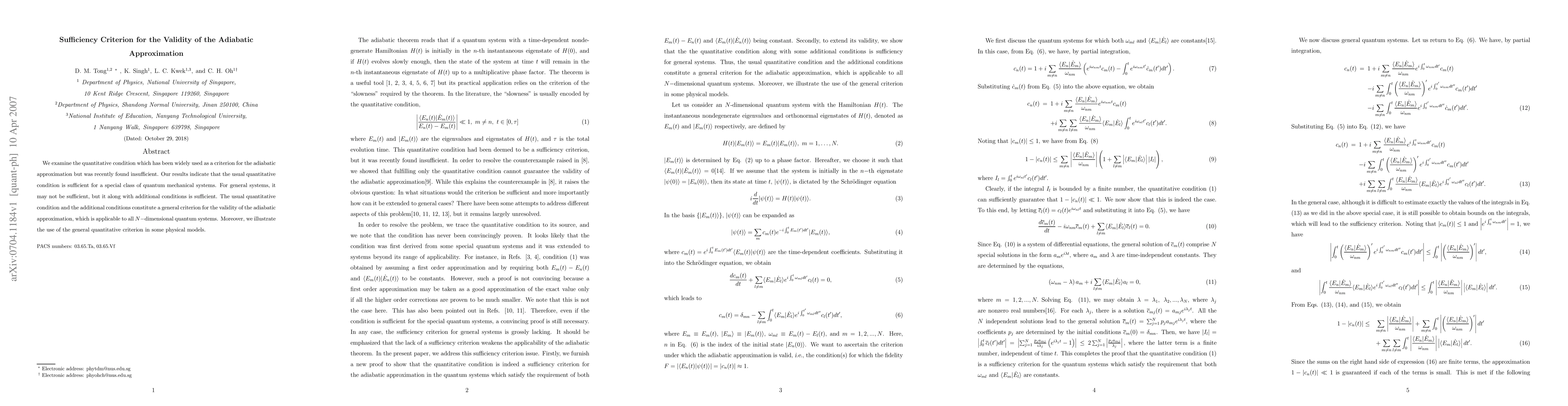 This paper proposes a general sufficiency criterion for the validity of the adiabatic approximation, showing that while the usual condition is sufficient for specific quantum systems, it requires additional conditions for general systems. The new criterion is applicable to all $N$-dimensional quantum systems and is demonstrated through physical models.