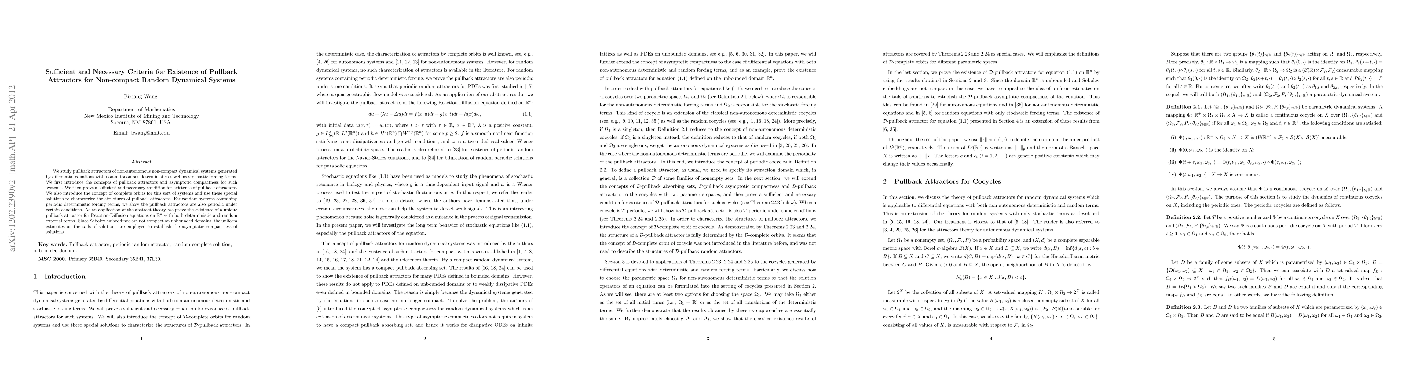 This paper establishes sufficient and necessary criteria for the existence of pullback attractors in non-compact random dynamical systems driven by both deterministic and stochastic terms. It introduces concepts like complete orbits and proves that pullback attractors for periodic deterministic systems are also periodic, ultimately applying the theory to Reaction-Diffusion equations.
