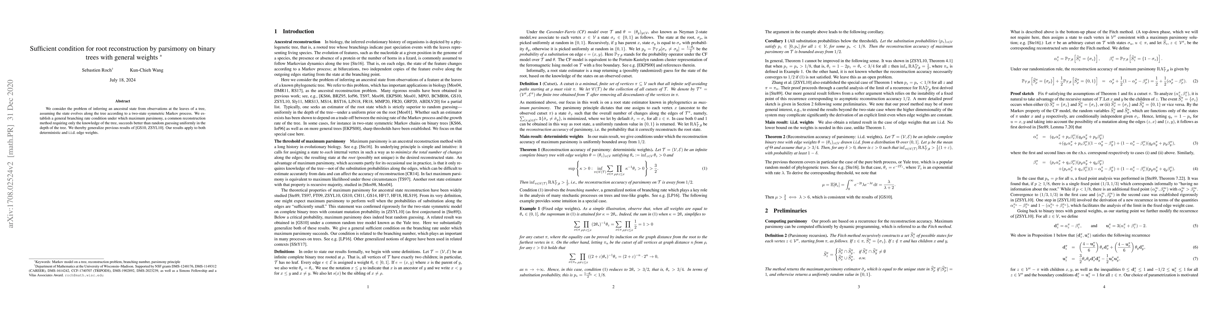 We consider the problem of inferring an ancestral state from observations at the leaves of a tree, assuming the state evolves along the tree according to a two-state symmetric Markov process. We establish a general branching rate condition under which maximum parsimony, a common reconstruction method requiring only the knowledge of the tree, succeeds better than random guessing uniformly in the depth of the tree. We thereby generalize previous results of (Zhang et al., 2010) and (Gascuel and Steel, 2010). Our results apply to both deterministic and i.i.d. edge weights.