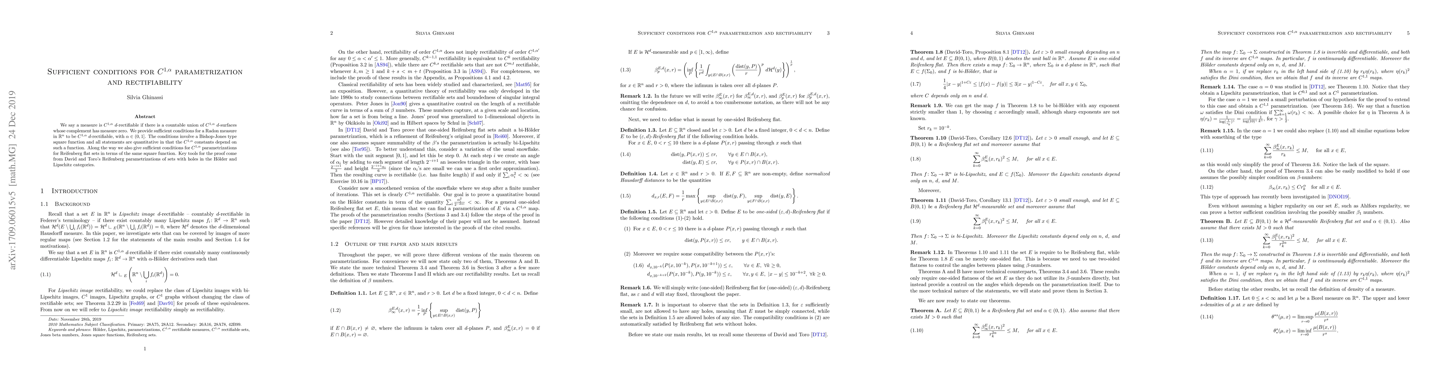 The paper provides sufficient conditions for a Radon measure in $oxed{ ext{R}^n$ to be $C^{1,eta}$ $d$-rectifiable, where $eta oxed{ ext{in } (0, 1]}$. The conditions involve a Bishop-Jones type square function and are quantitative.
