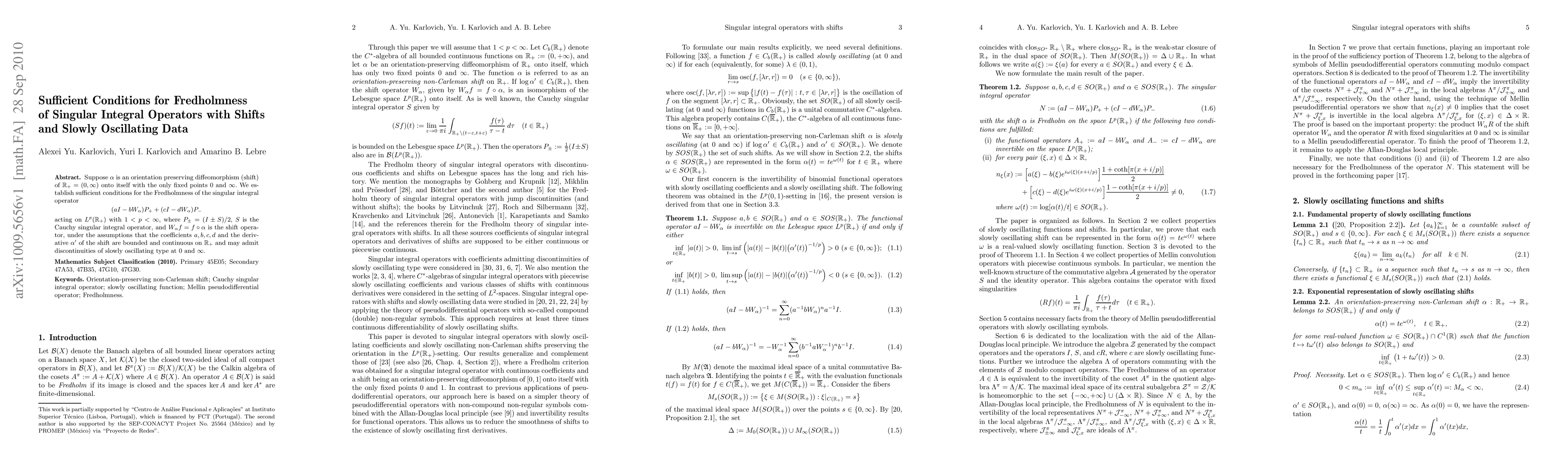 This paper establishes sufficient conditions for the Fredholmness of a singular integral operator involving shifts and slowly oscillating data, acting on $L^p(\mR_+)$ for $1<p<\infty$. The conditions depend on bounded, continuous coefficients and the behavior of the shift's derivative near the fixed points $0$ and $\infty$.