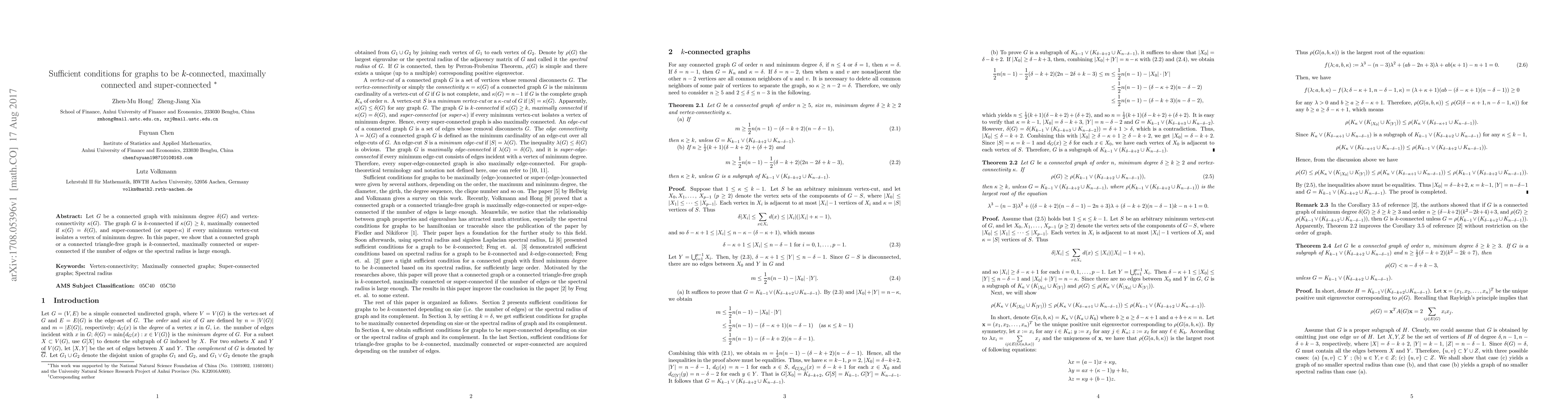 Let $G$ be a connected graph with minimum degree $\delta(G)$ and vertex-connectivity $\kappa(G)$. The graph $G$ is $k$-connected if $\kappa(G)\geq k$, maximally connected if $\kappa(G) = \delta(G)$, and super-connected (or super-$\kappa$) if every minimum vertex-cut isolates a vertex of minimum degree. In this paper, we show that a connected graph or a connected triangle-free graph is $k$-connected, maximally connected or super-connected if the number of edges or the spectral radius is large enough.