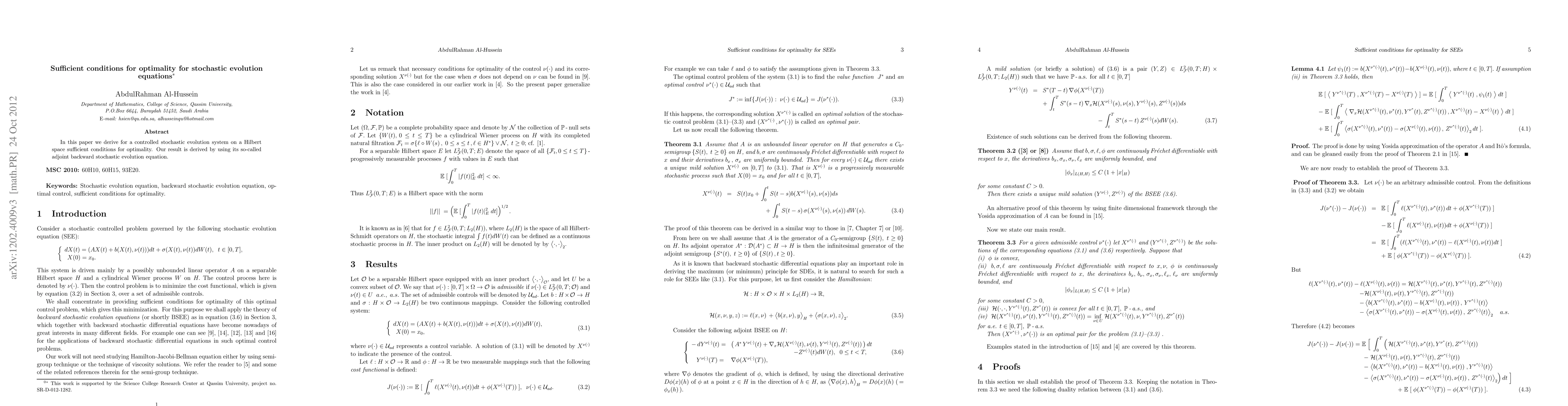 In this paper we derive for a controlled stochastic evolution system on a Hilbert space sufficient conditions for optimality. Our result is derived by using its so-called adjoint backward stochastic evolution equation.