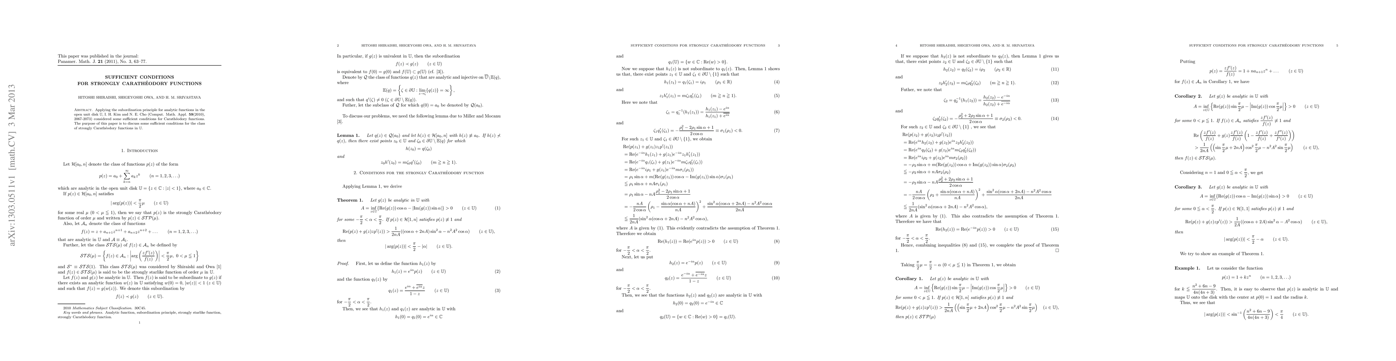 This paper explores sufficient conditions for strongly Carathéodory functions in the open unit disk, extending previous work by I. H. Kim and N. E. Cho on Carathéodory functions using the subordination principle for analytic functions. The findings provide deeper insights into this class of functions within complex analysis.