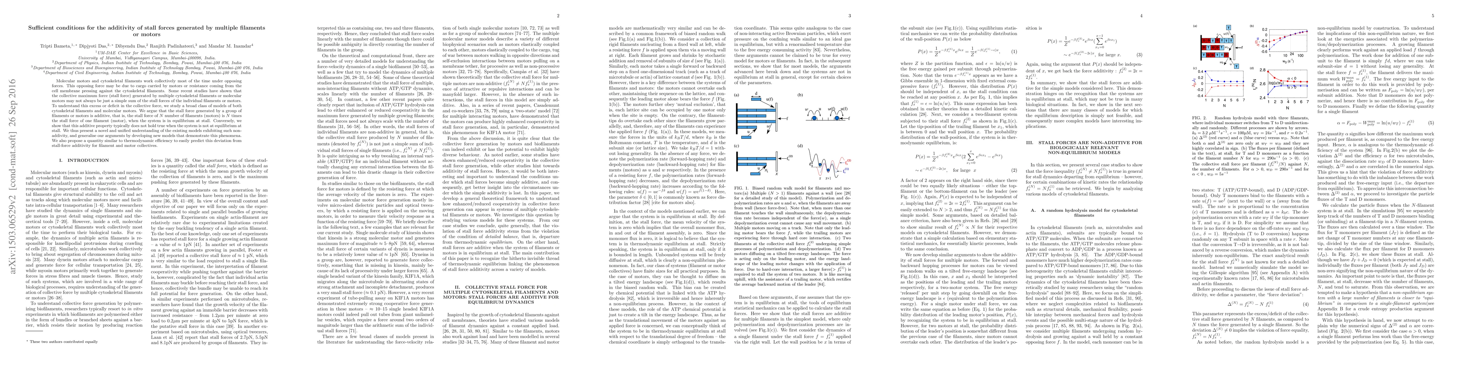 This paper investigates conditions under which the stall force generated by multiple cytoskeletal filaments or molecular motors is additive, finding that it is additive when the system is at equilibrium but not when it is not. It proposes a new metric to predict deviations from additivity.