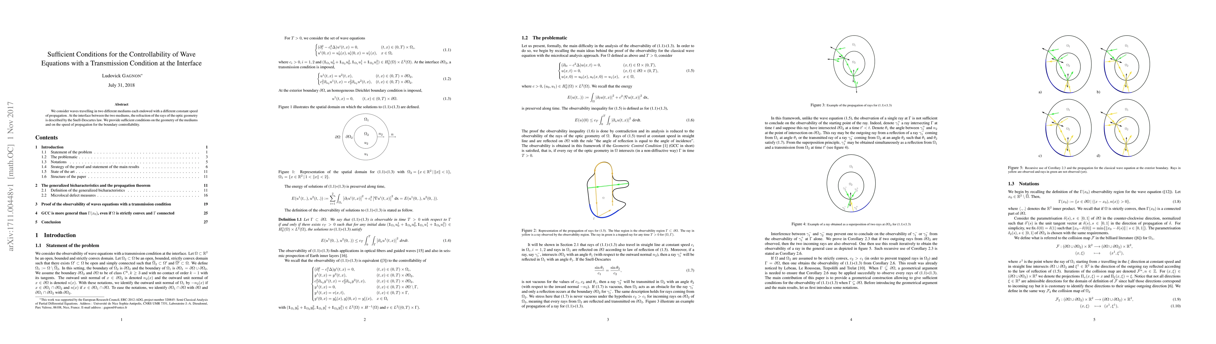We consider waves travelling in two different mediums each endowed with a different constant speed of propagation. At the interface between the two mediums, the refraction of the rays of the optic geometry is described by the Snell-Descartes law. We provide sufficient conditions on the geometry of the mediums and on the speed of propagation for the boundary controllability.
