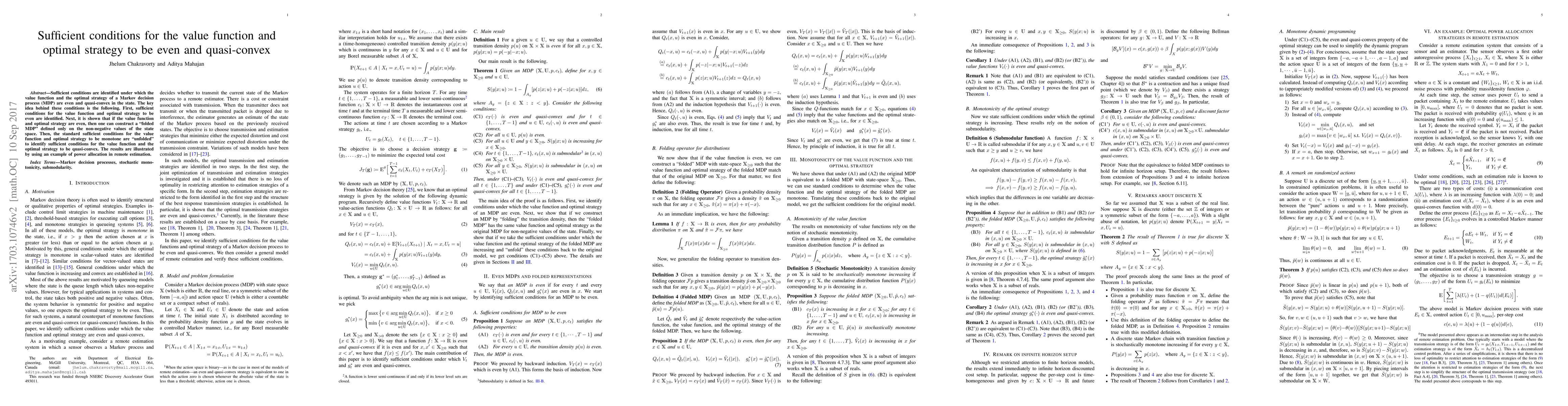 Sufficient conditions are identified under which the value function and the optimal strategy of a Markov decision process (MDP) are even and quasi-convex in the state. The key idea behind these conditions is the following. First, sufficient conditions for the value function and optimal strategy to be even are identified. Next, it is shown that if the value function and optimal strategy are even, then one can construct a "folded MDP" defined only on the non-negative values of the state space. Then, the standard sufficient conditions for the value function and optimal strategy to be monotone are "unfolded" to identify sufficient conditions for the value function and the optimal strategy to be quasi-convex. The results are illustrated by using an example of power allocation in remote estimation.