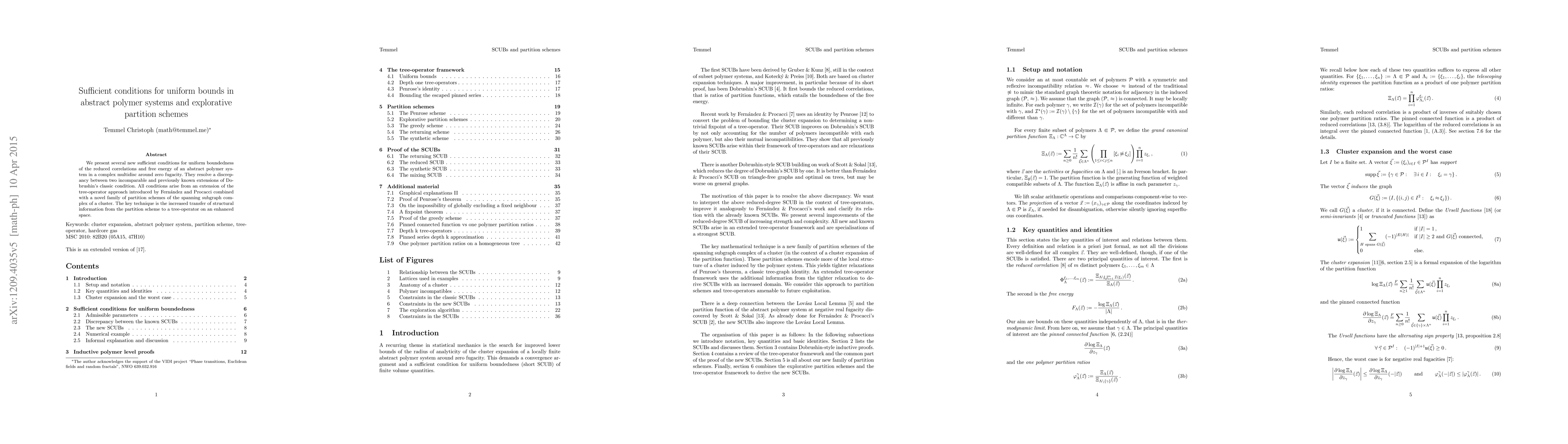 Researchers developed new conditions for uniform bounds in abstract polymer systems, resolving a discrepancy between existing extensions of Dobrushin's classic condition. These conditions arise from an extension of the tree-operator approach combined with novel partition schemes.