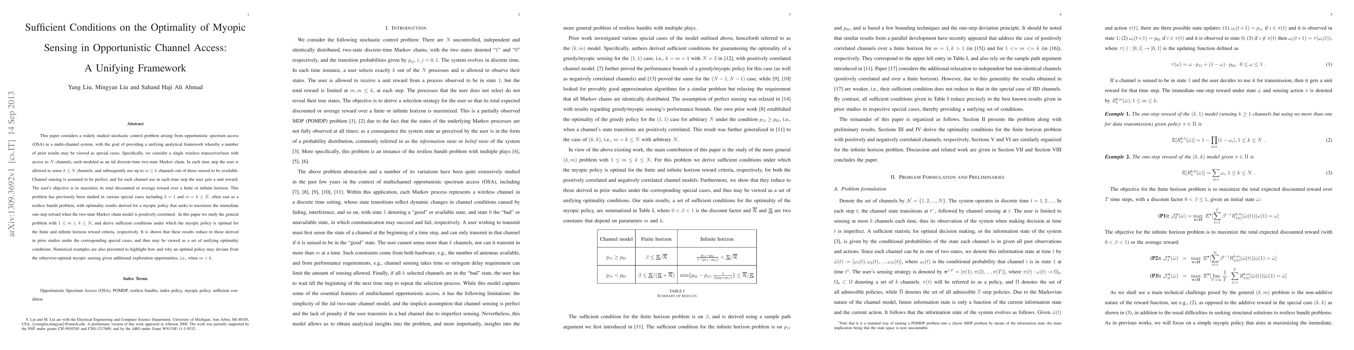 m\leq k\leq N$, and derive sufficient conditions under which the myopic policy